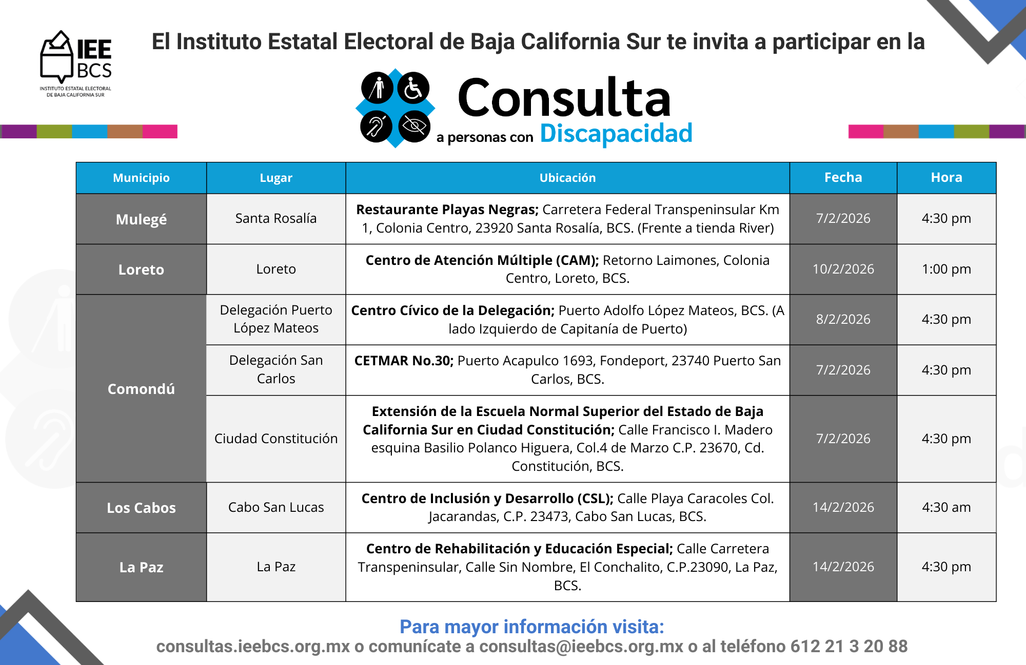 Sedes Consulta Personas con Discapacidad 2026