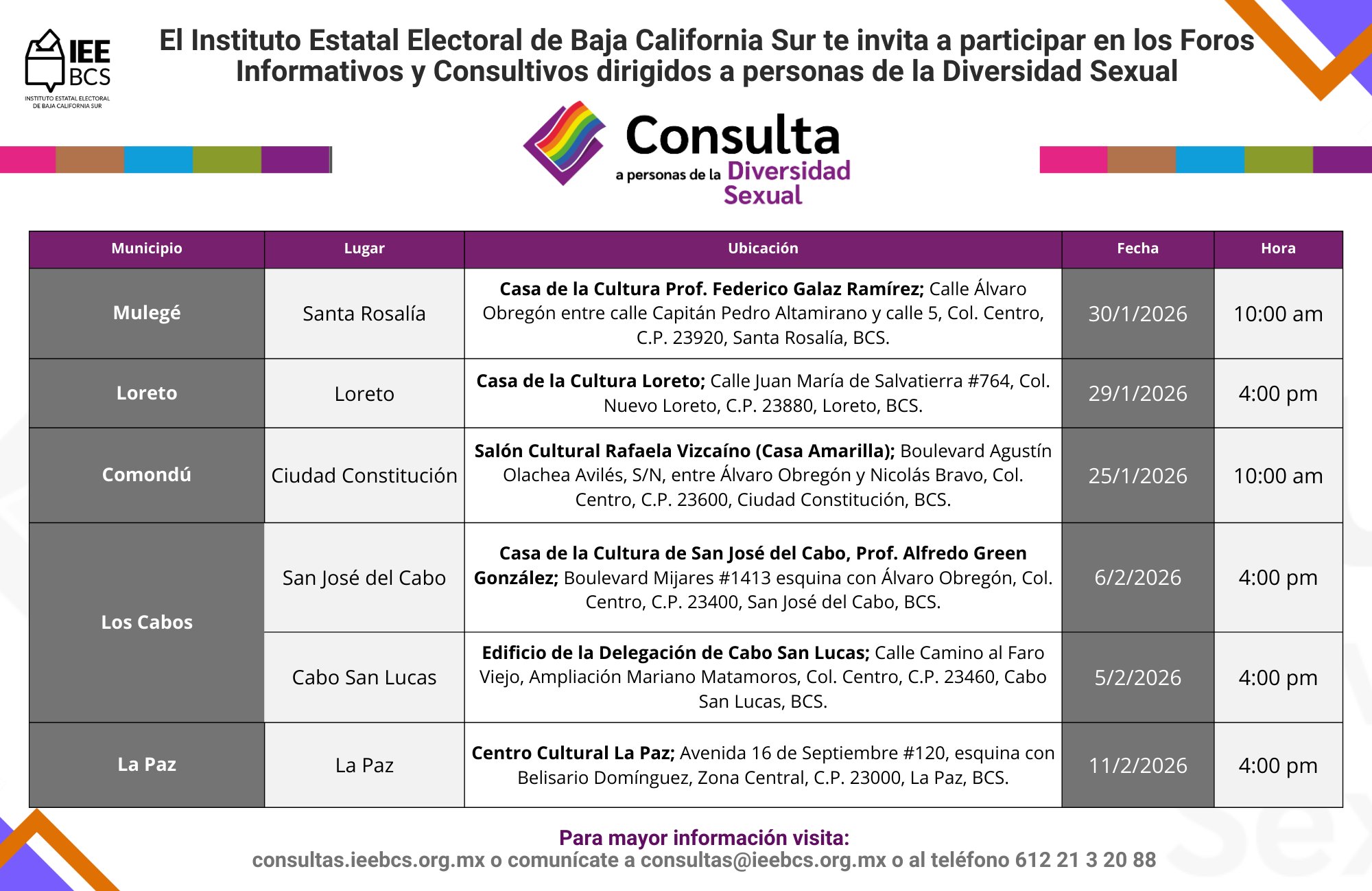 Si perteneces a alguno de estos grupos y deseas participar, regístrate para recibir información y ser parte de las próximas consultas.